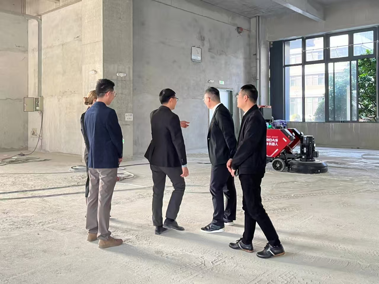 The leaders of the chamber of commerce stopped to watch one after another, showing great interest in the efficient operation of the Hero 900. Under the detailed explanation of Zhou Xianhua, the president of Orcas, they learned about the outstanding performance of the Hero 900 in the intelligent navigation system. Its high-precision positioning and path planning capabilities ensure that grinding tasks can be accurately and stably completed in complex construction environments, significantly improving construction quality.