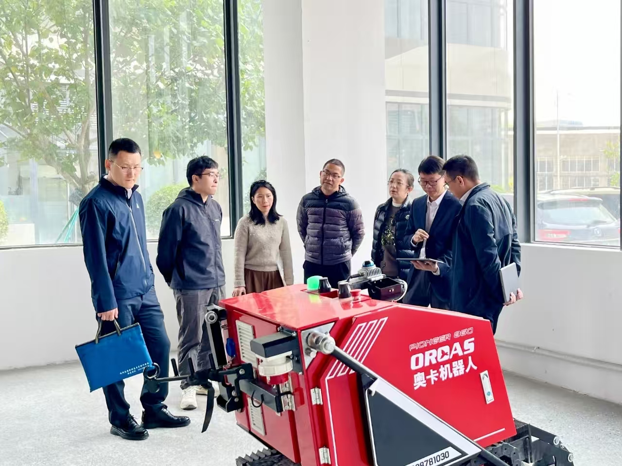 On April 2, 2025, Zou Guanfei, Deputy Director of the Science and Technology Bureau of Nanhai District, Foshan City, Wei Junjing, Secretary-General of the Association for Science and Technology, Pang Wanyi, a staff member of the High-tech Division, An Dongyao, Director of the Nanhai Productivity Promotion Center, and Wang Ruiwen, a staff member, visited Foshan Orcas Robot Co., LTD. (hereinafter referred to as "Orcas") to conduct an inspection and research.